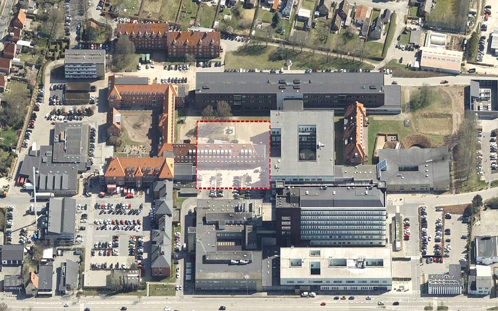 Det samlede byggeri omfatter cirka 14.500 kvadratmeter inklusive sammenkoblingen til det nyere Kvinde-Barn Hus.